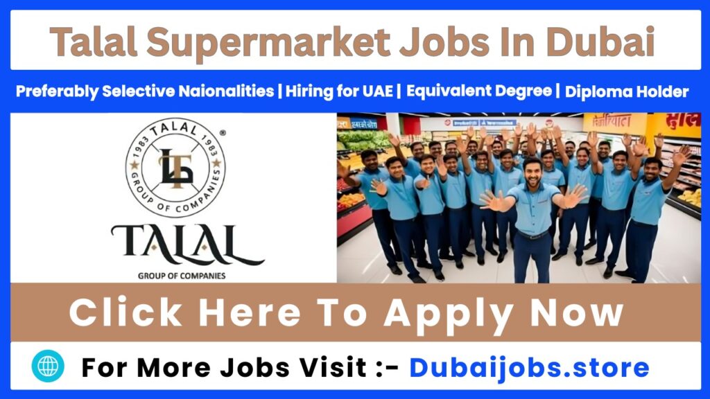 This image of Talal Group Jobs in Dubai isn’t just a generic job advertisement—it’s a visual invitation to join a large, multifaceted business group. For candidates, it means more than a single role; it offers a launching pad into a varied career path with solid growth potential, cross-functional learning, and alignment with a brand that has built trust and scale in the UAE. If you’re interested in building a meaningful and dynamic career in retail, hospitality, logistics, or technical operations, Talal Group could be the perfect fit.